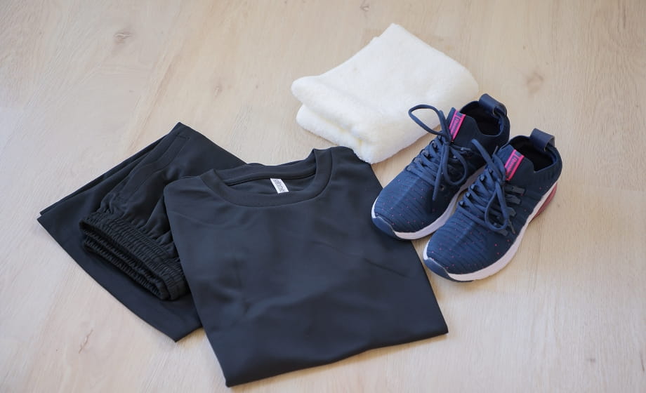 ジム内にトレーニングウェアとシューズ・タオル・ドリンクなどを完備しております。レンタルウェアをご希望でない方はご自身のウェアやシューズをご持参ください。