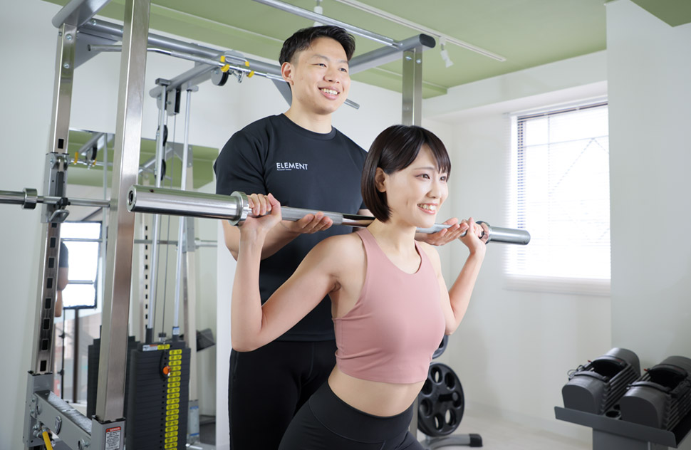 通い放題のパーソナルジム ELEMENTでは、プロのトレーナーが指導にあたります。(トレーナー資格保持者もしくは早期資格取得を目指すトレーナーのみ)
